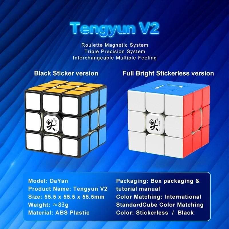 The TengYun3x3 V2 M is just as light and stable as its predecessor. Perfect for beginers and experts alike. This cube is available in both Black and Stickerless Bright colours schemes.